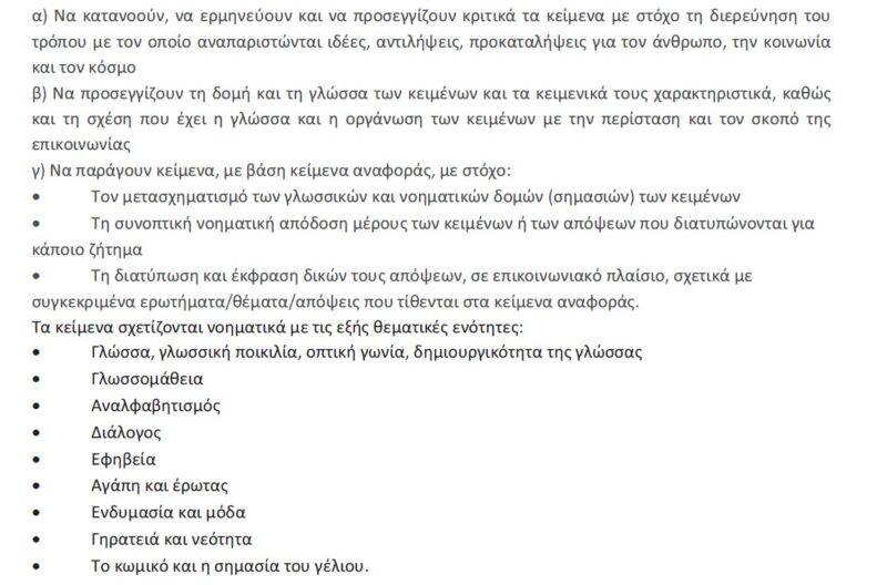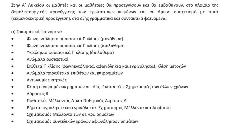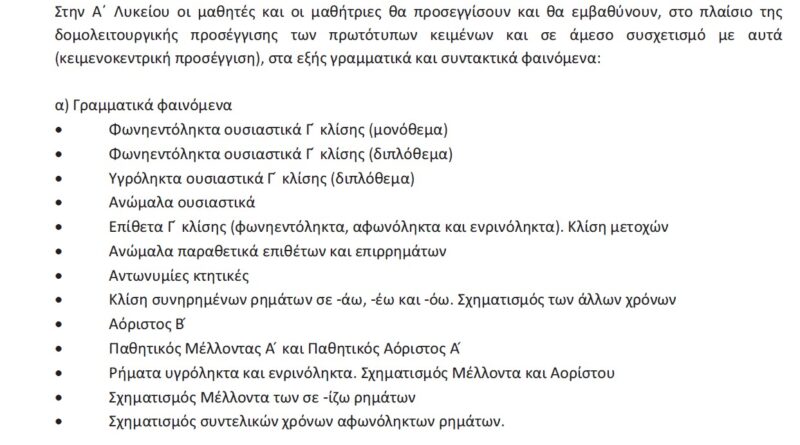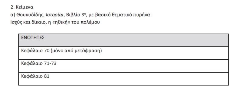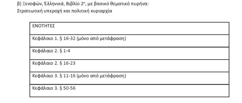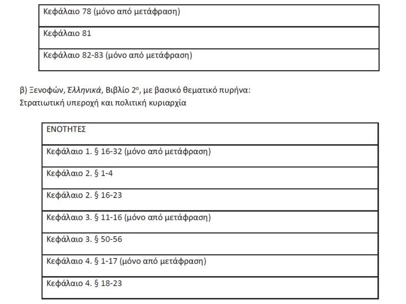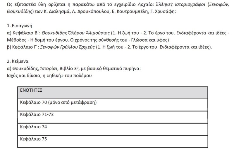 Εξεταστέα ύλη Αρχαίας Ελληνικής Γλώσσας ΓΕΛ 2023-2024