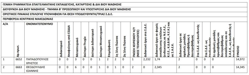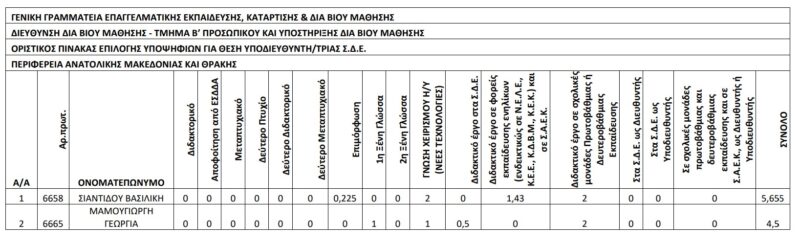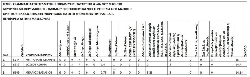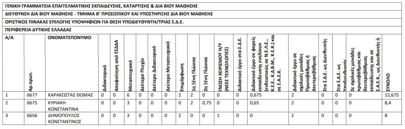 | ΟΡΙΣΤΙΚΟΣ ΠΙΝΑΚΑΣ ΕΠΙΛΟΓΗΣ ΥΠΟΨΗΦΙΩΝ ΓΙΑ ΘΕΣΗ ΥΠΟΔΙΕΥΘΥΝΤΗ/ΤΡΙΑΣ Σ.Δ.Ε. | |||||||||||||||||||