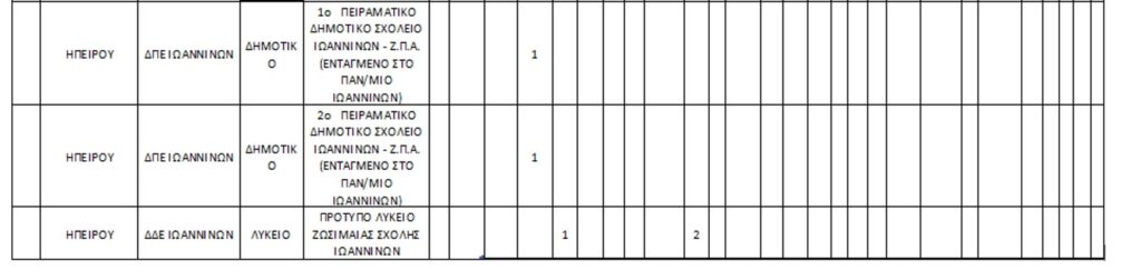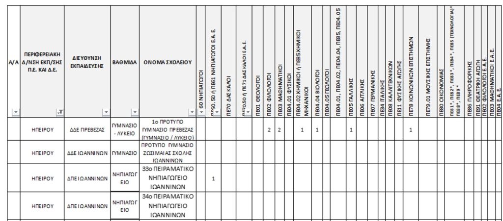 Παράρτημα Ι: Πίνακας προκηρυσσόμενων θέσεων ανά Π.Σ. και ΠΕΙ.Σ.