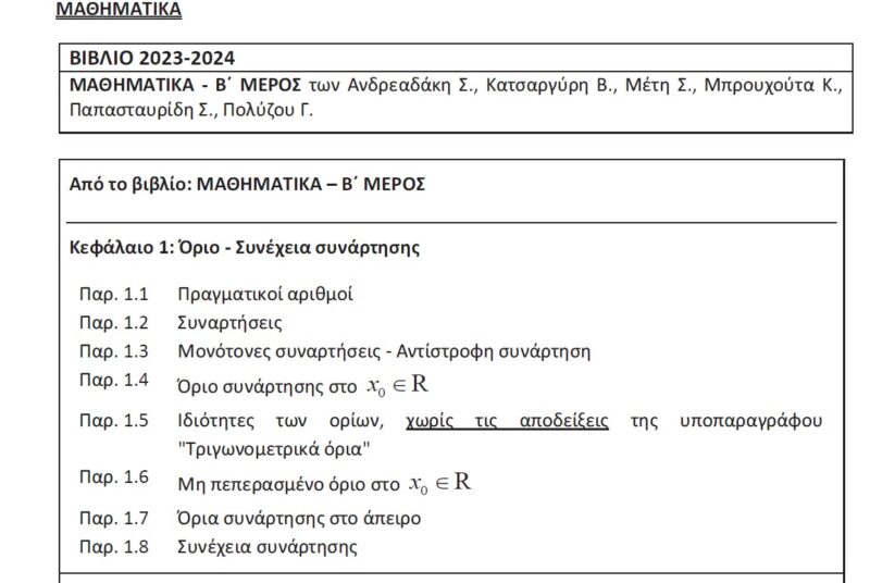 Ύλη Μαθηματικών Πανελλαδικών 2023