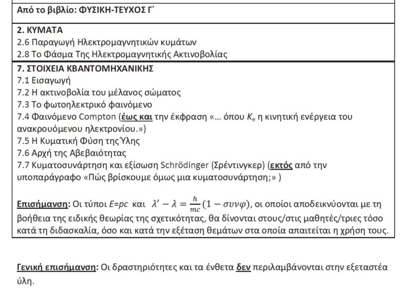 Καθορισμός εξεταστέας ύλης για το έτος 2024 για τα μαθήματα που εξετάζονται πανελλαδικά για την εισαγωγή στην Τριτοβάθμια Εκπαίδευση αποφοίτων Γ’ τάξης Ημερησίου Γενικού Λυκείου και Γ’ τάξης Εσπερινού Γενικού Λυκείου.
